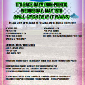 OPEN PRACTICE WILL BE ON SATURDAY, MAY 11th WITH A TIME To BE ANNOUNCED!